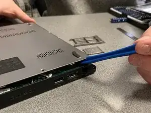 Проведите пластиковым инструментом по периметру корпуса, пока крышка не отщелкнется.