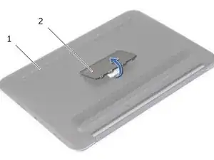 Используйте пальцы или лопатку, чтобы приподнять значок системы с нижней части ноутбука.