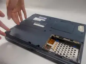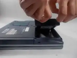 Поднимите аккумулятор вверх и извлеките его из корпуса ноутбука.