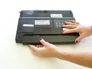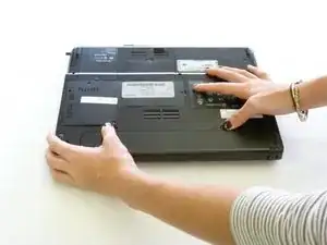 Оттяните блок аккумулятора от ноутбука, чтобы его удалить.