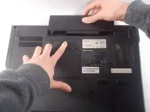 Удерживая второй замок в разблокированном положении, вытащите аккумулятор из ноутбука.