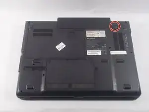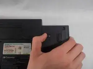 Переверните ноутбук вверх дном и найдите первый переключатель блокировки.