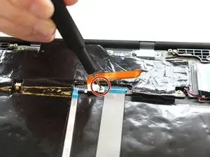 Используйте инструмент для открытия iFixit, чтобы оторвать клей по всей системе аккумулятора.