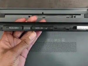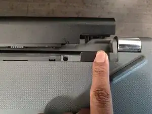 На ползунке будет три вертикально параллельных рычага и небольшой символ батареи, заполненный на 3/4, слева от ползунка. Этот ползунок отсоединяет аккумулятор от ноутбука.