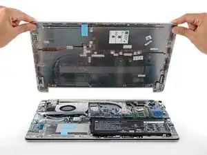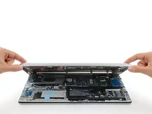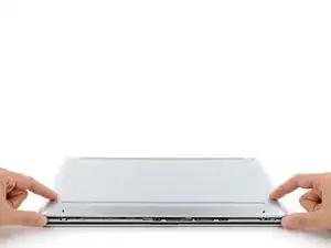 Чтобы установить заднюю панель обратно, положите её на раму и плотно нажмите по периметру, чтобы защёлкнулись все фиксаторы.