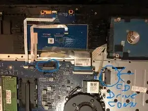 Установите новый аккумулятор, зафиксируйте винтами. При установке задней крышки выдвиньте привод CD на расстояние около 3/4 дюйма. После установки крышки верните привод CD на место.