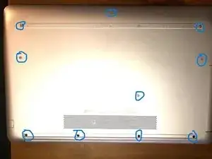 Используя отвёртку с крестообразным наконечником, снимите десять винтов, крепящих нижнюю крышку.