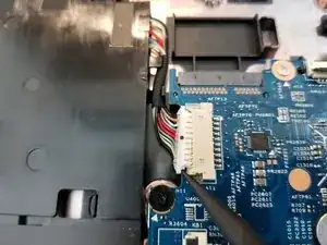 Отсоедините разъём аккумулятора, раздвинув обе его кромки наружу с помощью острого конца лопатки.