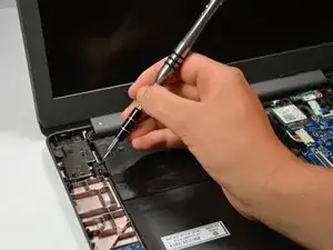 Используйте пластиковый инструмент для вскрытия, чтобы отжать панель клавиатуры от корпуса устройства.
