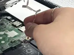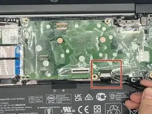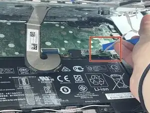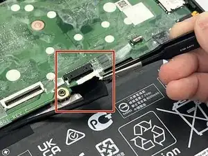 Найдите второй кабель и ZIF-разъём, присоединяющий его к материнской плате. Затем отстегните его с помощью инструмента для вскрытия iFixit.