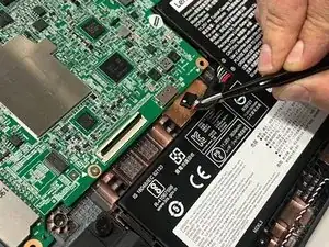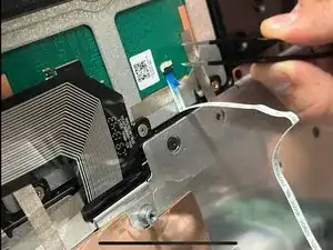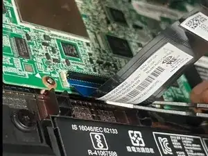 Используйте пинцет, чтобы отключить маленький шлейф, ослабив черный замок и потянув его, пока он не освободится.