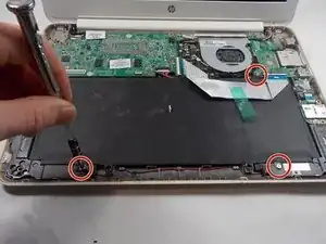 Если аккумулятор в вашем HP Chromebook 14-q029wm не заряжается или держит заряд меньше, чем должен, возможно, пришло время заменить его. Со временем аккумулятор ноутбука может терять ёмкость, перегреваться или внутренне отсоединяться. После того как вы убедились, что аккумулятор неисправен, это руководство проведёт вас пошагово по процессу снятия и установки нового аккумулятора. Для дополнительных советов по устранению неполадок нажмите сюда. В этом руководстве показано, как заменить аккумулятор. Также убедитесь, что питание полностью выключено и внешний источник питания не подключён.