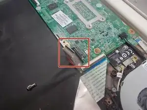 Вытащите белую язычок из чёрного посадочного отверстия над аккумулятором пальцами.