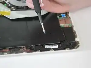 Используйте отвертку Phillips #0, чтобы выкрутить три винта 4.6 мм, которые крепят аккумулятор к корпусу.