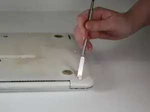 Используйте отвертку Phillips #0, чтобы выкрутить четыре оставшихся винта 6.7 мм с нижней панели.