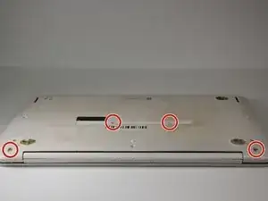 Переверните ноутбук так, чтобы нижняя часть была обращена вверх.