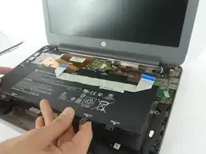 Поднимите аккумулятор и извлеките его из корпуса ноутбука.