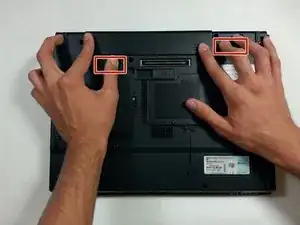 Используя обе руки, нажмите на защёлки и аккуратно извлеките аккумулятор.