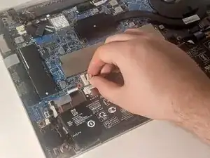 Аккуратно выньте белый разъём аккумулятора прямо из гнезда на материнской плате.