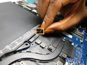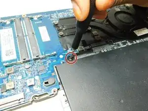 Ослабьте единственный фиксирующий винт, удерживающий аккумулятор, с помощью отвертки Phillips #00.