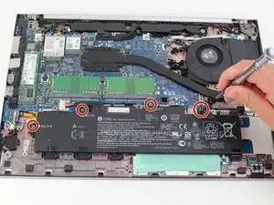 Снимите 4 мм винты, фиксирующие аккумулятор, используя отвертку Torx T9.