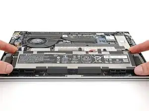 Повторите предыдущий шаг для другой стороны крышки, чтобы освободить оставшиеся защёлки.
