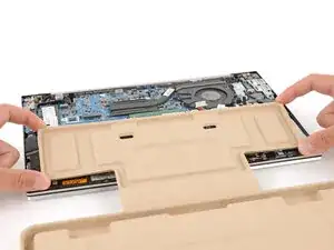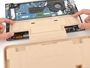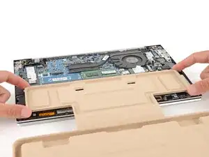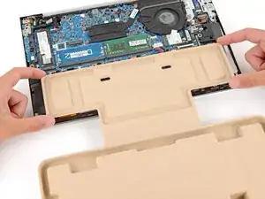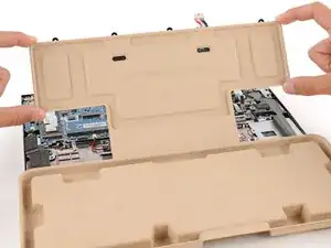 Закройте картонную подложку так, чтобы старый аккумулятор был надёжно упакован, и отложите в сторону.
