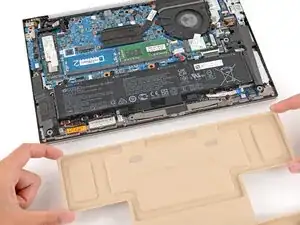 Снова вставьте плоский конец лопатки рядом с надписью ELITEBOOK.