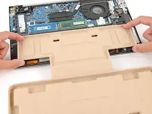 Разместите ноутбук так, чтобы задний край (с шарниром экрана) был ближе к Вам.