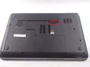 Сдвиньте защёлку под аккумулятором влево.