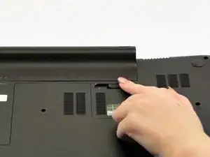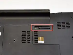 Сдвиньте защёлку освобождения аккумулятора влево; она находится на правой стороне аккумулятора.