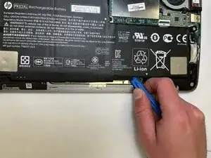 Используйте пластиковый инструмент для открывания, чтобы снять аккумулятор.