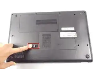 Переместите переключатель разблокировки аккумулятора вправо, к центру ноутбука.