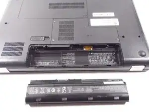 HP G62-340US имеет 6-ячейчный литий-ионный аккумулятор емкостью 47Втч, который располагается на нижней части компьютера.