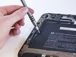 Открутите два винта Philips #00 длиной 3.0 мм с правой стороны аккумулятора.