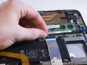 Открутите два винта Philips #00 длиной 4.0 мм с левой стороны аккумулятора.