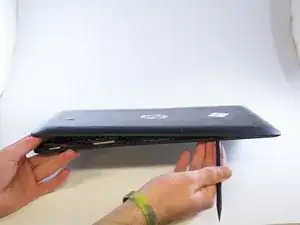 Осторожно используйте черную нейлоновую лопатку, чтобы отогнуть заднюю крышку от экрана, пока она не отсоединится.
