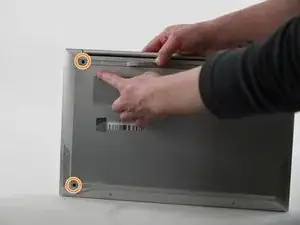Снимите два серебристых винта на дне ноутбука с помощью отвертки Philips #00.