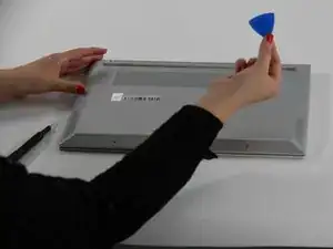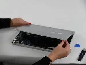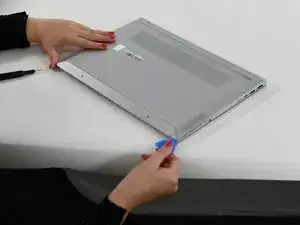 Проведите лопаткой по краям ноутбука, где корпус имеет шов.