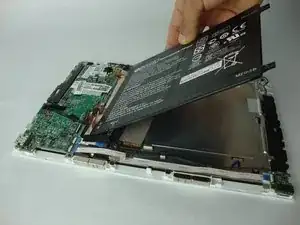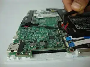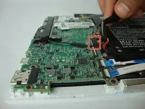 Осторожно отсоедините кабель аккумулятора от его разъёма на материнской плате.