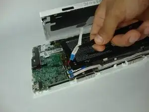 Осторожно отсоедините белый ленточный кабель от материнской платы.