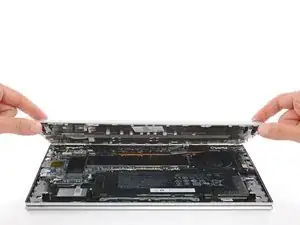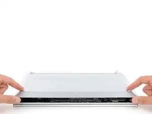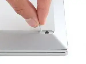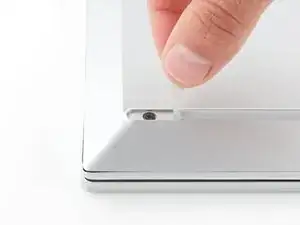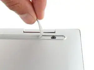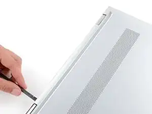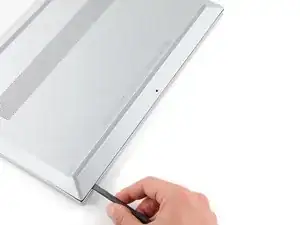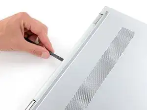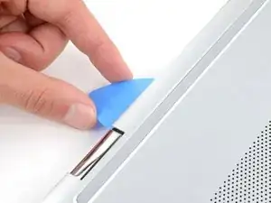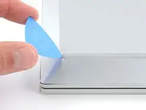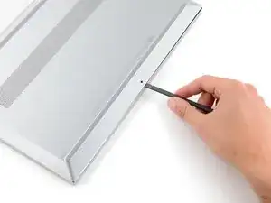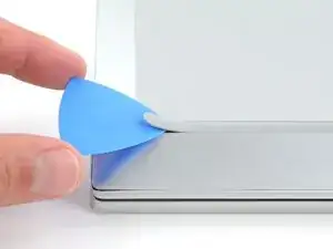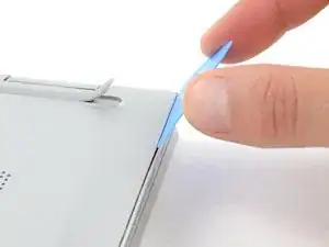 Вставьте плоскую сторону opening pick в шов между верхним краем задней крышки и каркасом, немного правее левого петли.