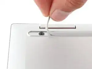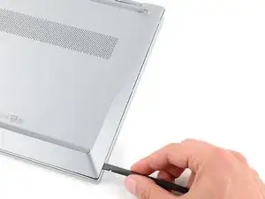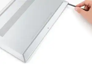 Используйте opening pick, чтобы приподнять один конец передней резиновой ножки, пока не сможете схватить его пальцами.