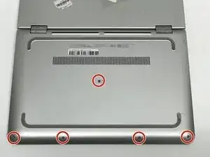 Снимите пять винтов Phillips #1 длиной 1.4 мм с нижней части ноутбука.
