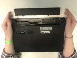 Переверните ноутбук и убедитесь, что отсек для аккумулятора обращен к вам.