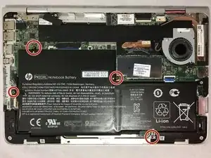 Снимите 4 винта, фиксирующие аккумулятор, с помощью крестовой отвертки Phillips #1.