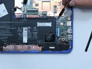 Используйте пластиковую лопатку, чтобы отключить два разъема питания.