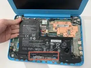 Используйте пальцы или лопатку, чтобы отсоединить кабель аккумулятора от разъёма.