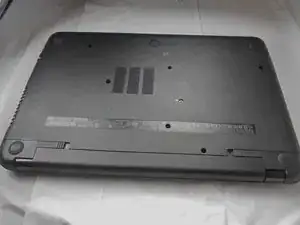 Переверните устройство, чтобы увидеть нижнюю часть ноутбука и получить доступ к аккумулятору и DVD±RW приводу.