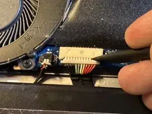 Пока нижний корпус снят, воспользуйтесь временем, чтобы очистить внутренности ноутбука с помощью баллончика с сжатым воздухом или электронного воздуходувки.